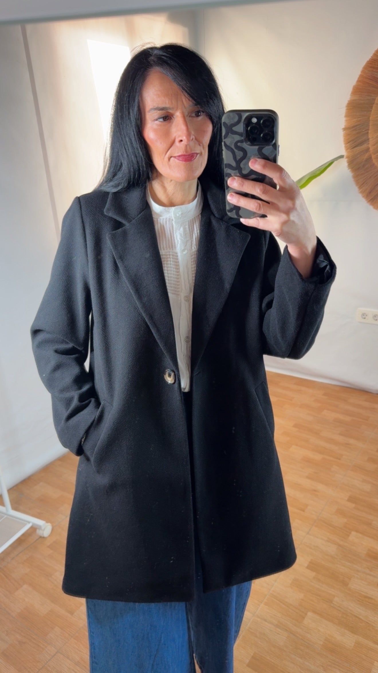Ya sea que lo combines con unos vaqueros anchos para un look urbano o sobre un vestido formal, este abrigo será tu aliado perfecto para las bajas temperaturas.
