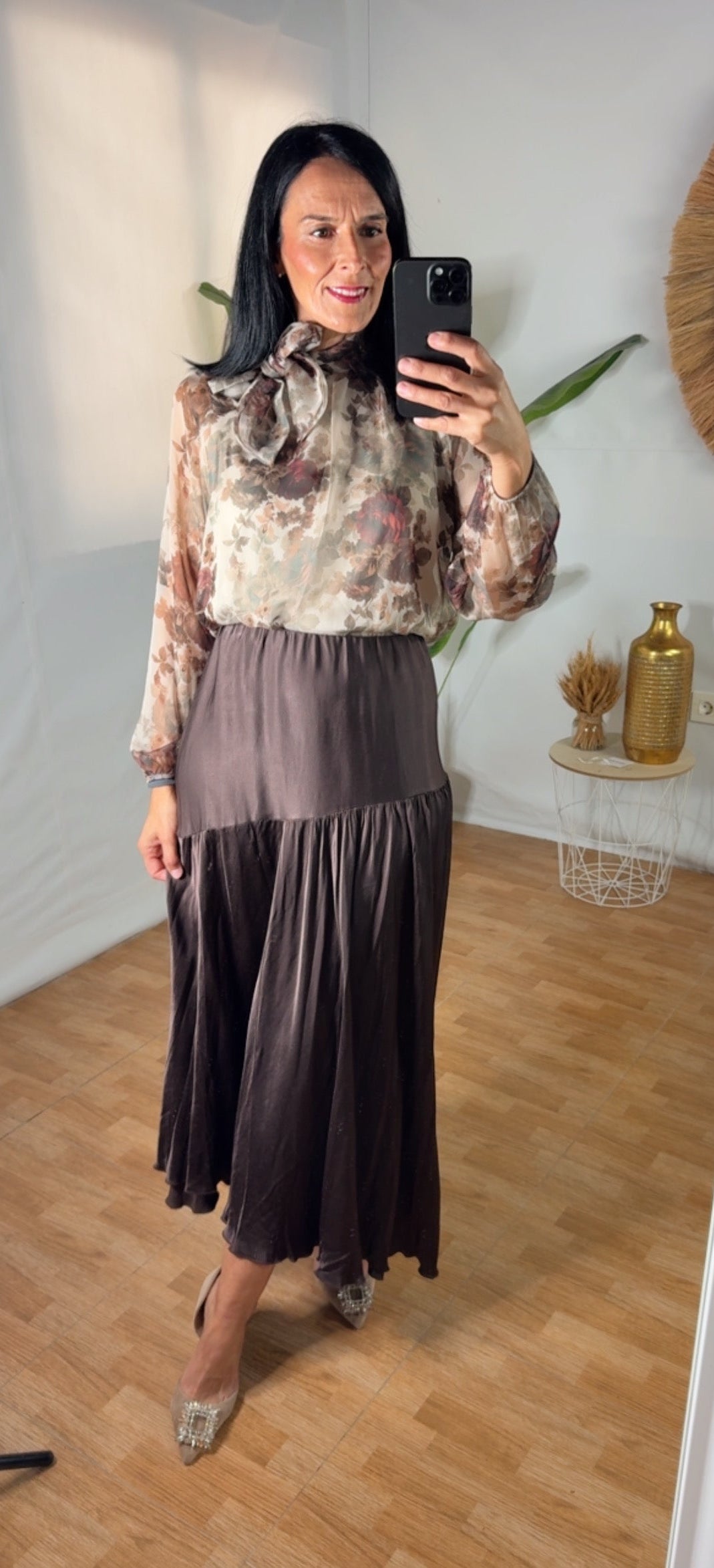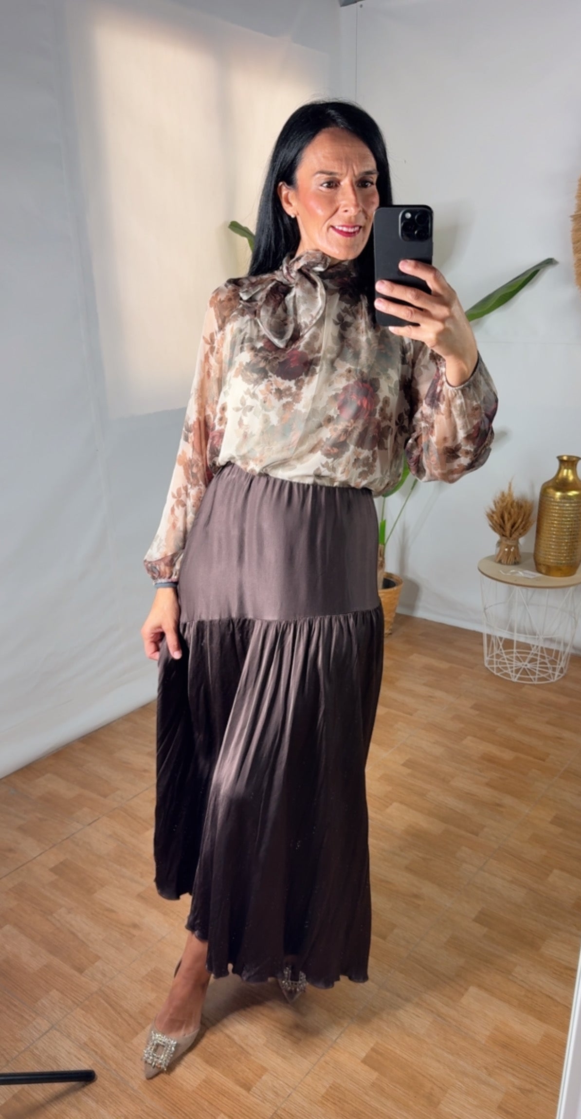 De tejido satinado y caída fluida, la falda Encanto Satén combina elegancia y comodidad en una prenda muy versátil. Su diseño con doble cuerpo estiliza la figura y crea un movimiento precioso al caminar.