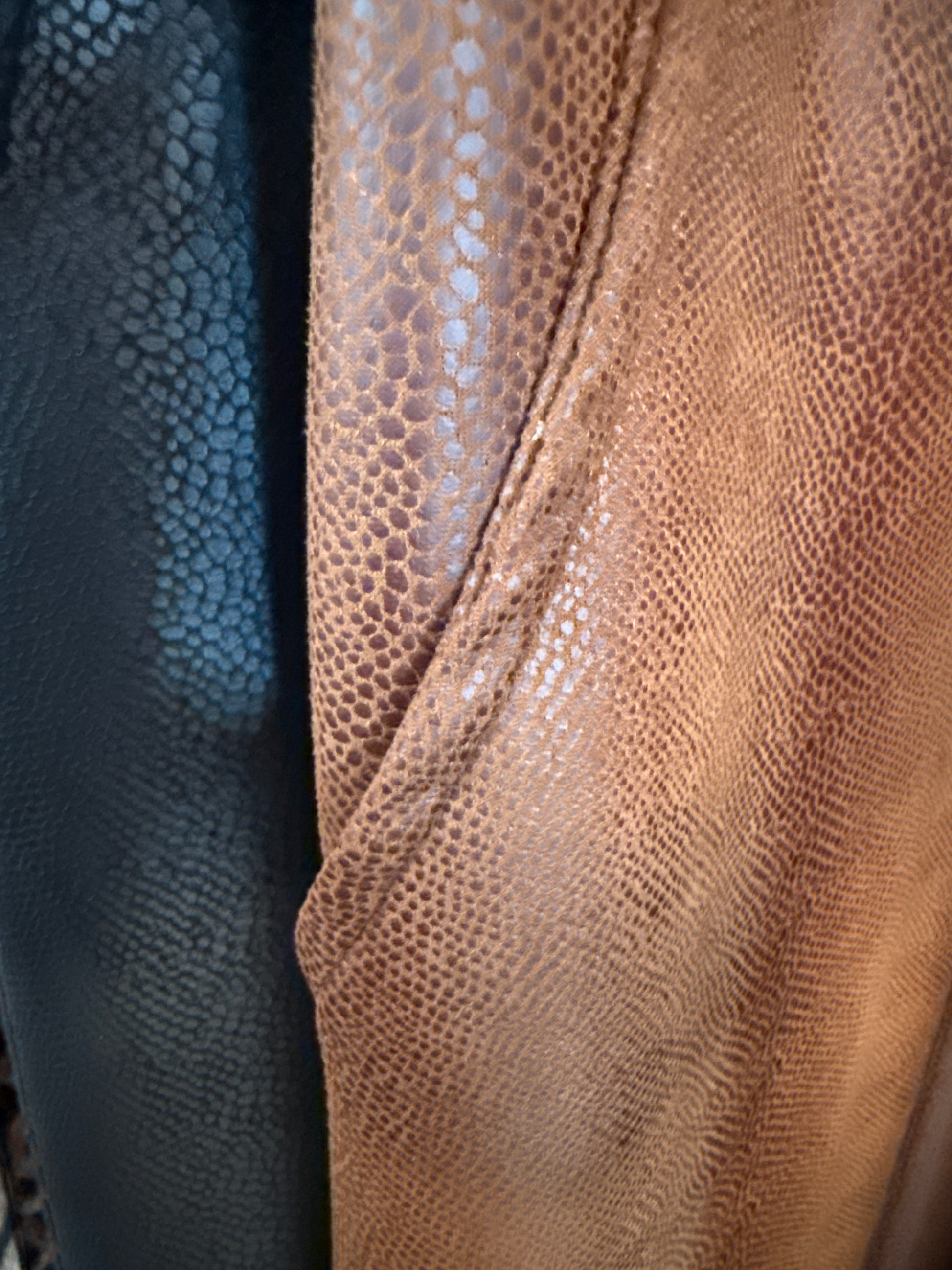 Atrévete a destacar con este pantalón efecto serpiente, una prenda que combina estilo, comodidad y carácter. Su tejido elástico con textura suave se adapta perfectamente a la figura, realzándola sin renunciar al confort.