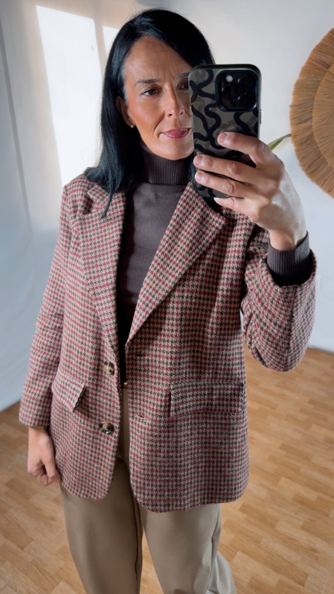 Añade un toque de distinción clásica a tu armario con nuestra Americana Vintage Check. Con un atemporal estampado de microcuadros en tonos tierra y una silueta estructurada, es la prenda exterior definitiva para un look effortless chic.